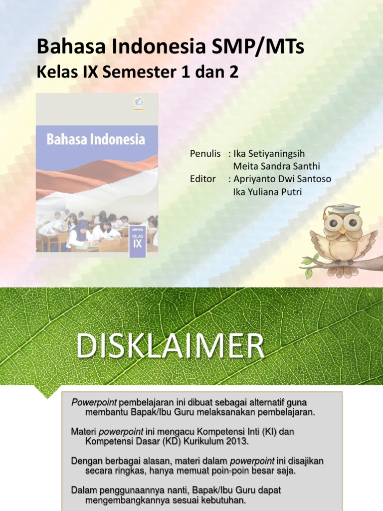 Pada postingan kali ini saya akan membagikan sebuah informasi tentang materi pembelajaran yang terdapat pada mata pelajaran Bahasa Indonesia khususnya pada jenjang SMP di kelas 9. RPP Kurikulum 2013 Revisi. Modul tersebut selanjutnya dapat dimanfaatkan guru dan juga peserta didik dalam pembelajaran jarak jauh pada.