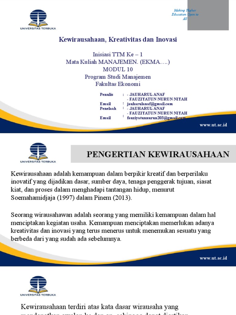 Istilah modul dapat menunjuk pada suatu paket pengajaran yang memuat pedoman bagi guru dan bahan pembelajaran untuk siswa. Menguraikan pengertian kreativitas dan memberikan contoh kreativitas dlm wirausaha 612. Menjelaskan mengembangkan inovasi kreativitas dan sistem penjualan produk 5.