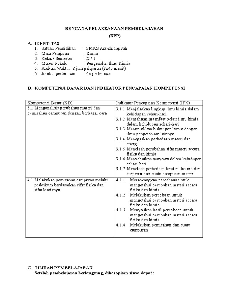 RPP Kimia KD 31 KELAS X SMA. Kelas 10 KD 34. Kelas 10 KD 31.