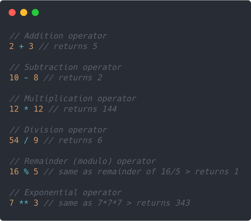 Let x 5. The operators are for addition subtraction multiplication division and remainder or modulo respectively. In this tutorial we will learn how this operator works with examples.