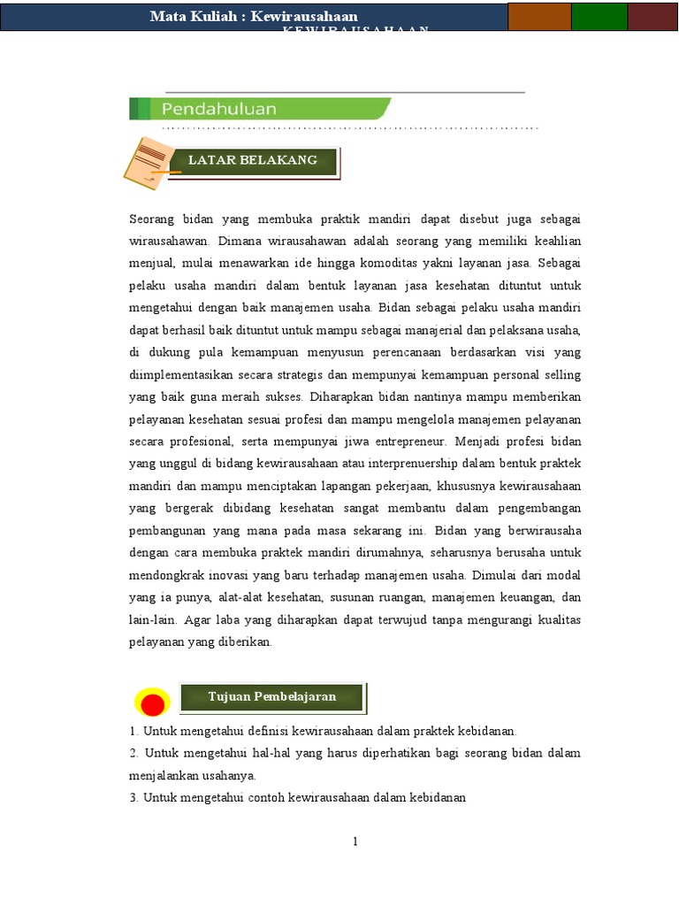 Modul wirausaha pdf. Perencanaan Keuangan Tabel 5. Seseorang yang mempunyai sikap mental wiraswasta Gambaran orang yang ideal karena kemampuannya untuk sukses dalam pemenuhan kebutuhan lahir dan batin seimbang selaras dan serasi baik dalam segi moral spiritual maupun dalam aspek kehidupan lainnya. Apa mengapa dan bagaimana berwirausaha merupakan konsep dasar yang harus difahamkan kepada peserta.